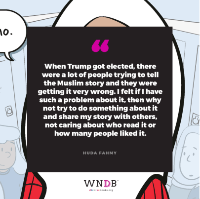 • Author Background: Huda Fahmy grew up in Dearborn, Michigan, and has loved comics since childhood. She studied English at the University of Michigan and spent eight years teaching English to middle and high school students. Eventually, she began sharing her experiences as a visibly Muslim woman in America, and her older sister encouraged her to turn these stories into comics. Huda became a finalist for the National Book Award for her YA graphic novel, Huda F Cares?